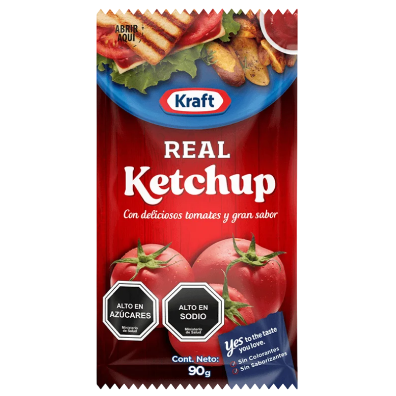 Ketchup Kraft Sachet 90 gramos, el sabor clásico en un formato práctico para tus comidas.