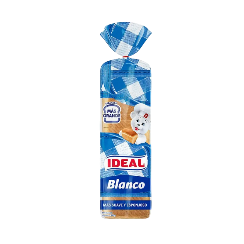 Pan de Molde Blanco Ideal 580 g: suave, fresco y perfecto para tus desayunos o sándwiches.