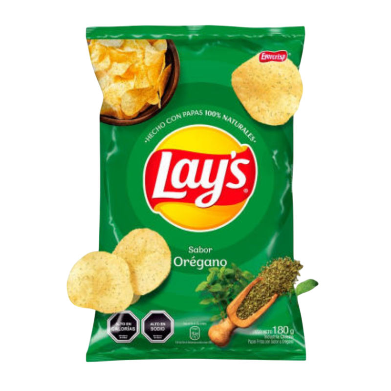 Papas Lay’s Corte Orégano 180 g: crujientes con un toque aromático de hierba fresca.
